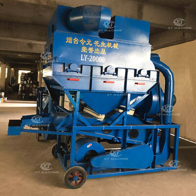 When the peanut destoner is working, the material continuously enters the middle section of the de-shelling screen. Due to the different densities and aerodynamic characteristics of the components in the material, under appropriate vibration and airflow, the less dense peanuts float to the top, while the more dense peanuts sink to the bottom, contacting the screen surface and forming automatic stratification.