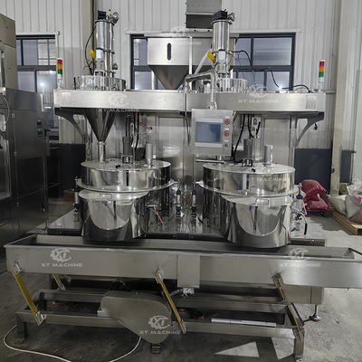 La máquina de recubrimiento automática es ideal para productos como cacahuetes recubiertos de masa, cafés con sabor, nueces, semillas de girasol, etc.La tolva de suministro del producto base con puerta corredera controlada neumáticamente entrega el producto a la balanza de pesaje controlada por PLC.Los lotes de producto base medidos con precisión se introducen en la cámara de recubrimiento.La solución se introduce en el aplicador de líquido de disco giratorio de alta velocidad mediante una bomba de desplazamiento positivoLos tiempos de ciclo varían según el tipo de producto y el número de ingredientes añadidos.Control preciso del tamaño del lote, y la entrega del líquido y del polvo, mantiene la consistencia del producto acabado recubierto.